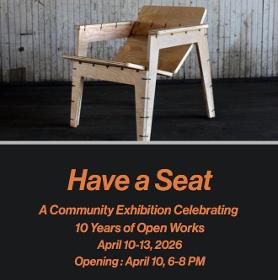 Have a Seat is a Community Exhibition Celebrating 10 Years of Open Works that showcase work by members past and present, in response to the prompt “have a seat.”
